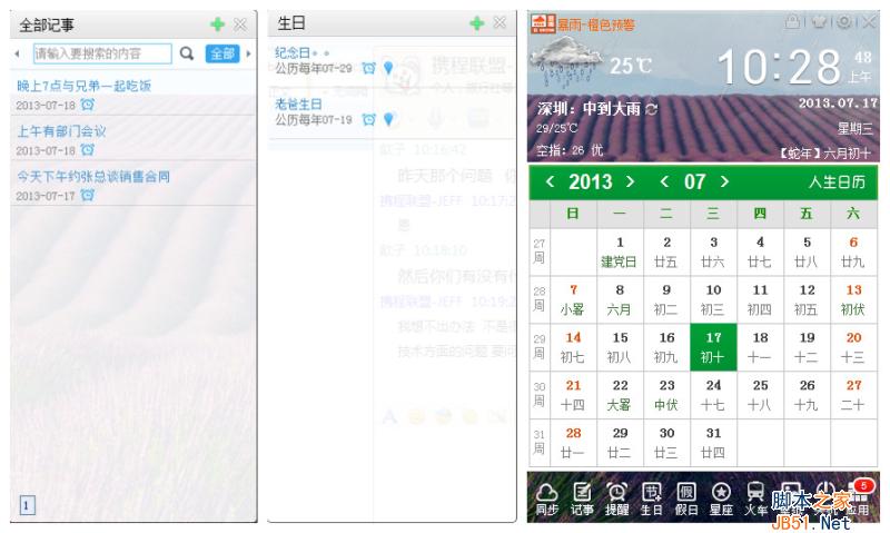 同时,在人生日历手机端的主页面会显示当天的工作备忘,在任务栏的下拉菜单里也会显示当天的工作备忘。只要我们开着人生日历,就能看到我们今天还有什么工作要做,还有什么重要的约会要去。