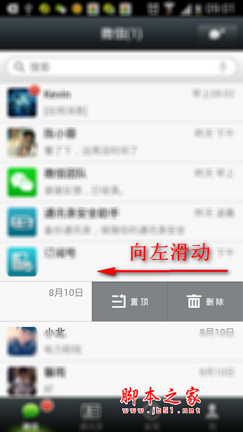 进入微信对话列表可以直接向左滑动微信对话款,即可出现删除按钮,反之则是进入聊天界面。