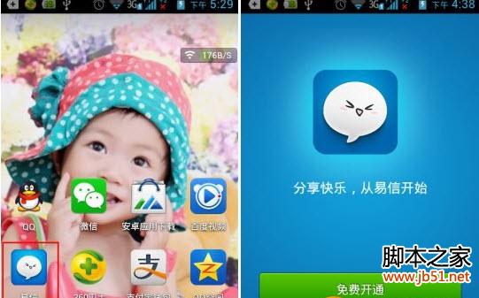 1、下载好易信后,打开易信软件,然后按提示免费开通易信。