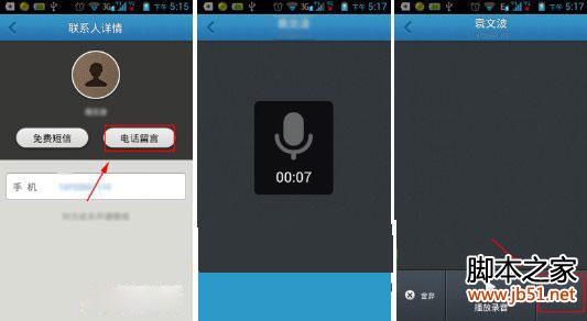 3、选择好好友时会出现免费短信和电话留言,打开电话留言,然后点击按住说话,说完以后松手,点击发送,这样对方就可以收到你的电话留言了。