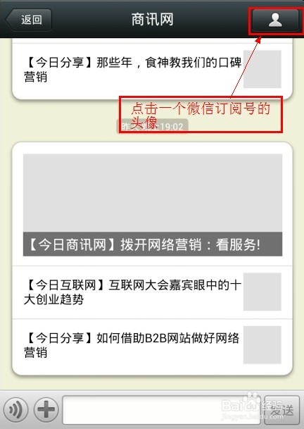 第一步:打开微信通讯录,进入订阅号,找一个你最想设置成桌面快捷方式的订阅号。点击它的右上角头像。