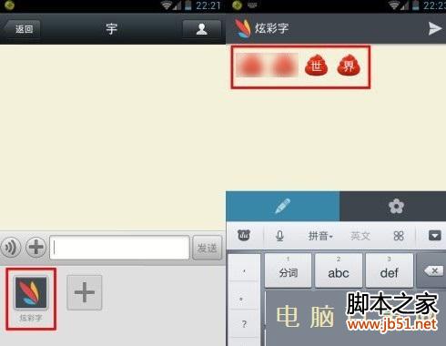 五、添加完成之后,我们再回到与微信聊天窗口当中,然后在输入文字的下方即可看到“炫彩字”工具了,我们点击进入,然后再输入文字,就可以打成彩色字体文字了,如下图: