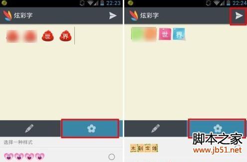 微信炫彩字拥有多种漂亮样式,输入和选择样式完成后点击右上角的发送即可,之后还会返回到微信聊天界面,并且还可以将其“分享”给朋友,非常的实用。