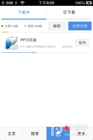 2.在PP助手(正版)-- 下载 -- 下载中(已下载)--查看应用程序是否已经下载完成