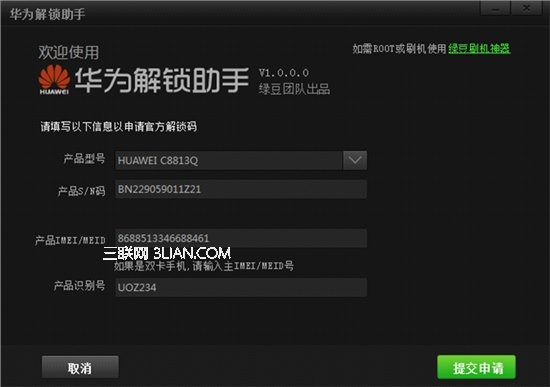 • 这里是一个简单的表单,需要您输入有关您手机的一些信息,这些信息都可以在您手机的包装盒、手机电池仓等位置找到。填写时请注意信息的准确,错误的信息会影响申请解锁码的进度;