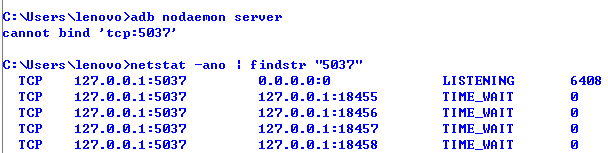 解决方案:通过以下尝试发现原来是adb server 端口绑定失败,继续查看到底是哪个端口给占用了