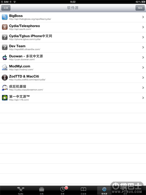 首先请确保你的iPhone已经越狱,如果没有越狱是肯定没法安装的。越狱后你点机器上会有Cydia这个程序,如图所示: