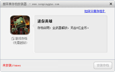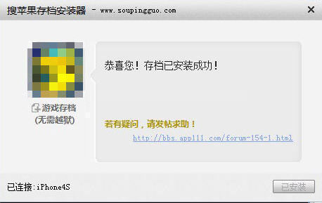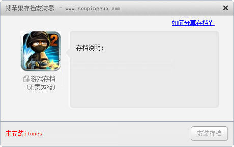 最新小编下载分享了很多ios的游戏存档,其中有很多来自搜苹果论坛,它的存档必须使用搜苹果存档安装器才能使用,怎么使用搜苹果存档安装器安装存档呢?下面就来看看西西小编的图文教程吧