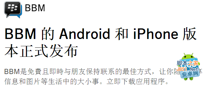 来自号称全球最安全的手机blackberry 的一款messenger免费通讯软件,之前都是BB平台专有的,只是后来blackberry实在抵不住全球智能手机的发展趋势。用户流失的同时,其实大家对blackberry messenger还是一如既往的期待。