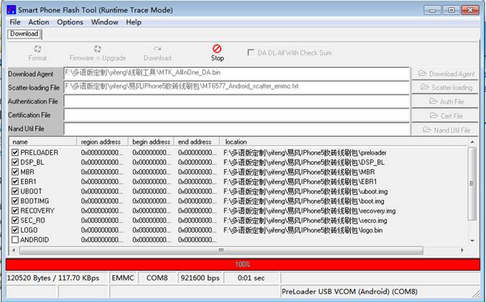 见到最后一个界面,恭喜你,刷机完成,断开USB线,按住音量下键 跟 电源键 大概3秒的时间,等待进入易风IPhone 5 恢复模式,在该模式下刷机即可,具体教程见易风IPhone5恢复模式刷机教程