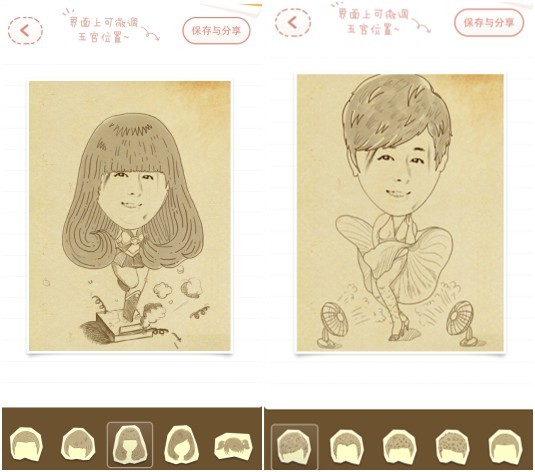 “漫画表情”中电影分类中的表情还是相当丰富的,都是大家耳熟能详的角色,比如猫王、玛丽莲梦露、钢铁侠、猪八戒、济公等,都是一众国内外知名人物。另外,点击漫画表情还能实时选择不同的发型,短发、丸子头、长发……给角色换上你喜欢的发型吧!