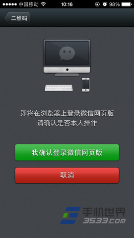 3)现在,打开手机微信,点击“发现→扫一扫”功能,,扫描电脑上的“微信客户端”二维码,然后点击确认登陆即可。(如下图所示)
