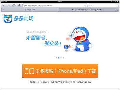 2.点击下载按钮,等待十几秒,多多市场就下载到你的Ipad的上了