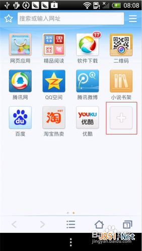 2、打开下载的QQ浏览器,QQ浏览器有两个页面,如果你打开后出现的不是这个页面,你就滑动到这一面,然后点击那个加号