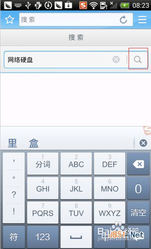 4、在空白的地方输入“网络硬盘”,然后点击搜索图标搜索