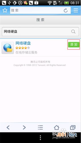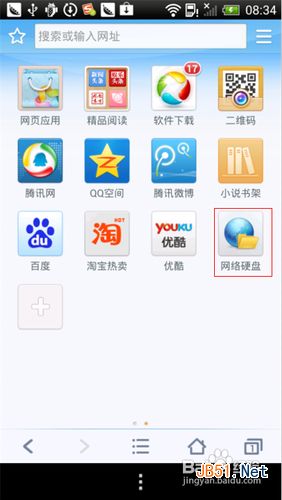 6、添加成功后会出现打开,你可以直接打开,也可以回到主页面找到网络硬盘打开,这里我们回到主页面进行操作,让大家知道下次再打开QQ浏览器的时候怎么操作。