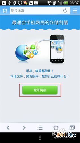 7、点击网络硬盘之后,会进入网络硬盘里面,但是会提示你要登陆网盘,你点击登陆网盘,输入你的QQ帐号密码即可