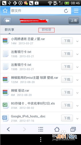 10、点击群列之后出现你所加的所有群,然后选择你想要看到的某个群里面的群共享。