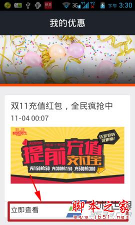 1)打开手机支付宝软件,进入支付宝后点击首页“我的优惠”,然后在我的优惠中点击双11充值红包。(如下图所示)