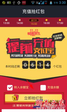 3)成功转入后点击查询中奖情况,如果中奖了支付宝会提醒本次抢到的红包金额。(如下图所示)