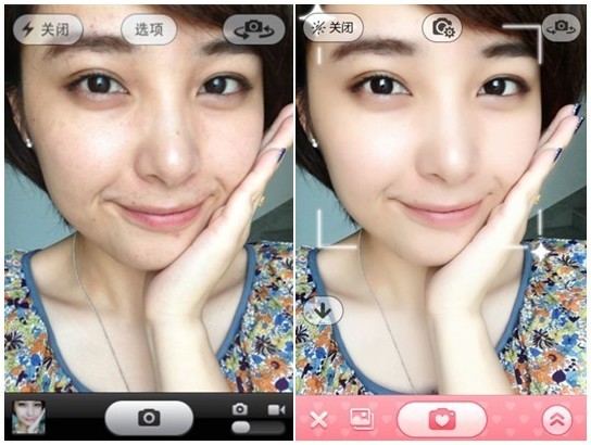 图1 左为普通相机自拍效果 右为美颜相机自拍效果