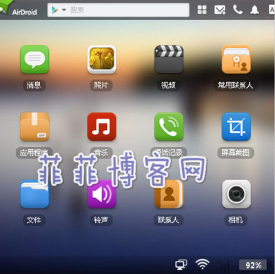 3)连接成功后就可以在电脑浏览器页面对手机进行各种控制啦,是不是有种似曾相识的感觉捏~没错,跟WebQQ有木有很像!不管是安装应用、管理手机文件、剪贴板共享、看照片视频听音乐,甚至可以直接在PC上收发短信、实时拍照哦!
