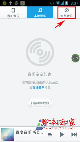 2)进入“百度音乐”后,点击“在线音乐”。在“在线音乐”里面就能看到“唱出好声音,看谁为你转身”的按钮了。(如下图所示)