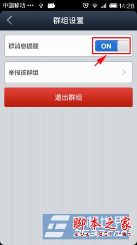 2)再点击设置,向右拨动,即可关掉群消息提醒。(如下图所示)