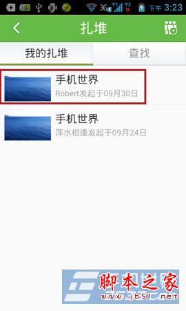 2)然后在我的扎堆找到要退的扎堆话题,点击打开,再点击右下角的图标。(如下图所示)