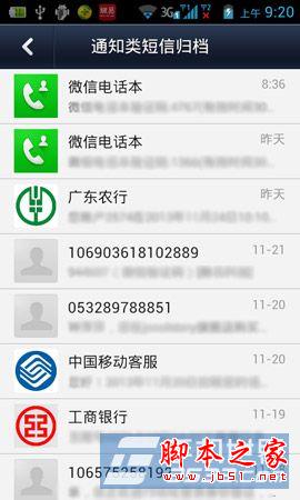2)然后点击通知类短信归档,在这里垃圾短信智能拦截还有通知类的短信都会自动归位到这里,让你的短信列表清爽整洁。(如下图所示)