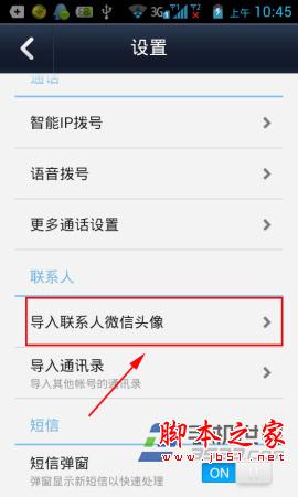 2)点击屏幕下方的联系人,在右上角打开“设置”,然后在设置中找到并点击“导入联系人微信头像”。(如下图所示)