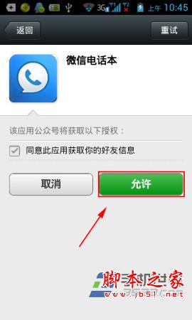 3)导入微信电话本后会出现授权好友信息的字样,点击“允许”,最后再到回你的联系人一栏中可以看到,通讯录己经导入了微信头像,是不是很特别呢?感兴趣的朋友不妨试一下!