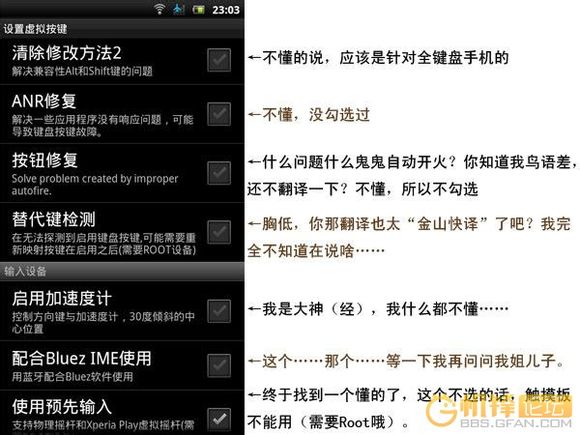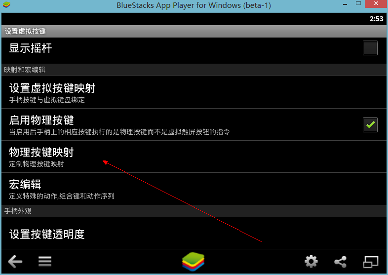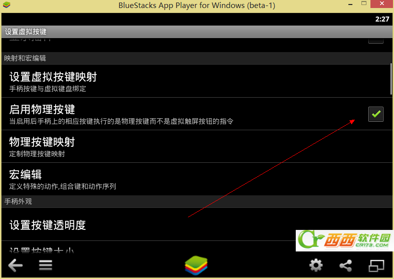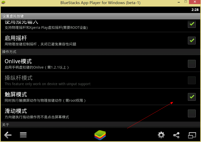 接着是设置, 虚拟物理和触屏模式按键要勾选起来(还有其他的设置有时间可以自己摸索~~)