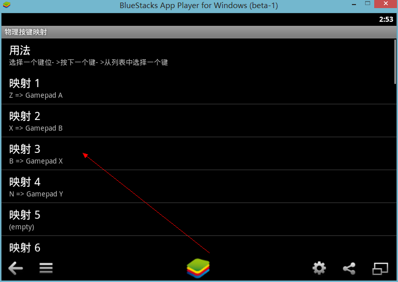 映射按键是映射物理按键,,,, 映射的时候 先输入按键 然后对应屏幕显示的手柄按钮,,, 如果是按钮A则 A to 按键A
