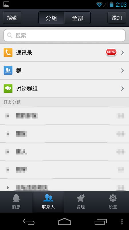 联系人方面同样支持分组,全部两种查看方式。