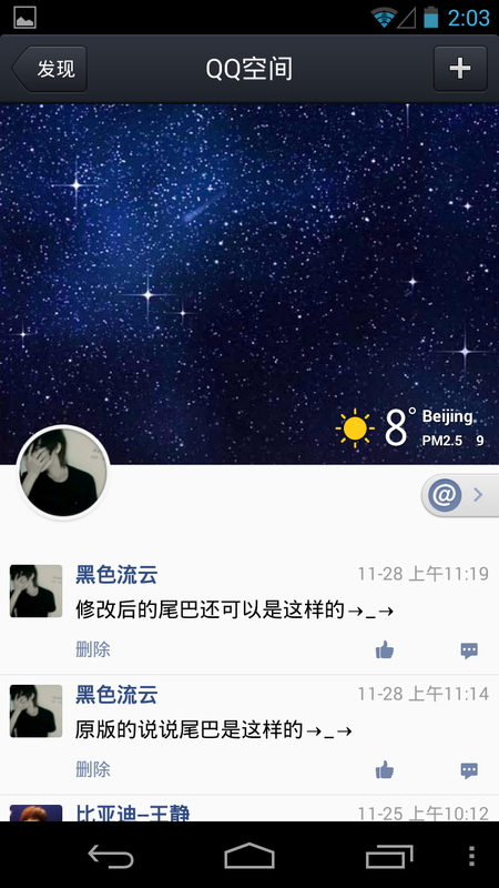 #p#分页标题#e#QQ空间支持天气,重要的是天气下面还有一个PM2.5值,太了解我大天朝了!赞一个!