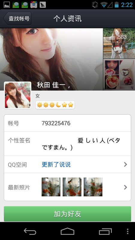 日本版不仅减小了安装包体积,还带来了不同国内版QQ的体验,重点是还能增强中日友好交流,支持中英文一键翻译是亮点,这使得很多想详细中文的岛国妹子也开始使用QQ,在女U文化日益发展的今天,国内很多厂商都开始邀请苍老师、杏梨老师代言产品了,如果TX也能在岛国让这些人气明星女U来给自己的产品做宣传的话,貌似查找附近人找到女U也不是梦。