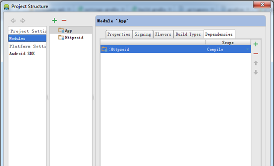 这是你在打开Open Module Settings就可以看到,已经导入httpzoid的类库