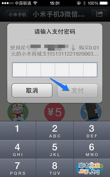 4.这里输入自己在微信支付中设置的密码,点击“支付”继续,如图所示