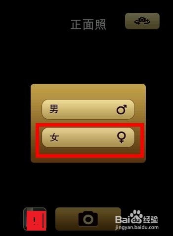 拍照完成后,会提示是否满意,不满意可以重新拍,成功后首先选择性别了!这个可以根据个人爱好设定,呵呵!