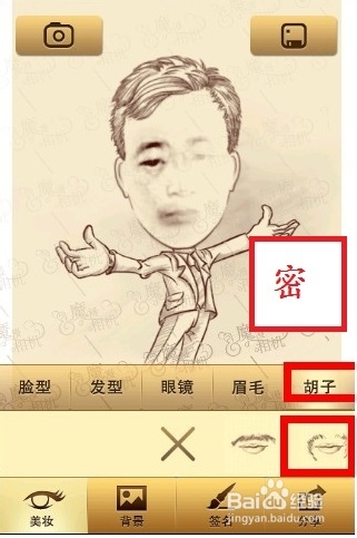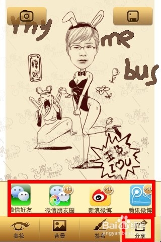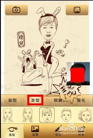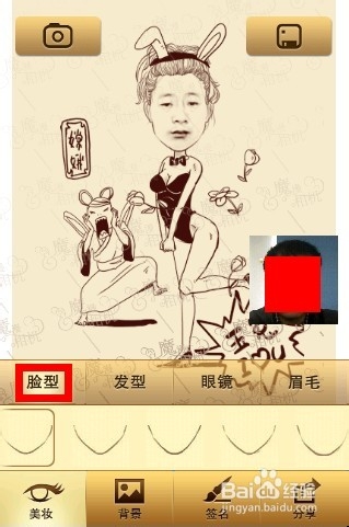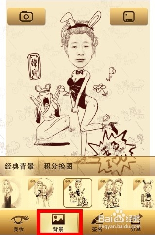 五官比例伸缩调 整,这个主要可以突出动漫元素, 可以拉的夸张点!呵呵!在下方背景选择你喜欢的背景图啊!很多幽默背景哦