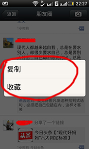 好,那么首先说说,如何把微信聊天记录,或者朋友圈里的文字导入电脑。有图有真相,拿朋友圈文字举例(手指一直按着文字,会弹出如下选项),看下图: