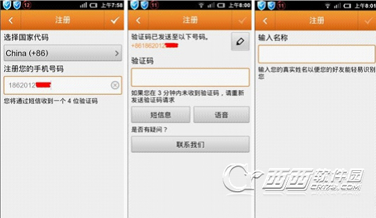 打开了ChatON的注册页面之后,ChatON就会智能识别你的手机号码,并自动帮你输入好,然后点击确认并就能获取验证码。当接收验证码的时候,ChatON也会智能读取验证码,并帮你填好,如果没有收到验证码,还能再次用短信或语言的方式获取验证码。最后输入你的名称就能完成注册。