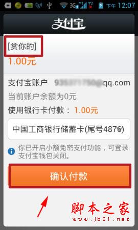 2)输入对方支付宝账户和金额后,就可以开始情感转账了,我们可以输入你要写的话和按住捎句话,同时还有可爱的表情供你选择,选择好后点击确认付款。(如下图所示)