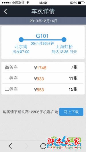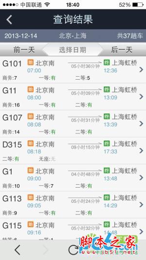 “列车服务”提供了是详尽的火车票查询功能。用户可以根据行程、日期、车型等条件查找需要车次信息,包括车次、车型、时间、余票情况。用户点击具体车次,还可以在车次详情页中查看到每个席别对应的价格和余票情况。