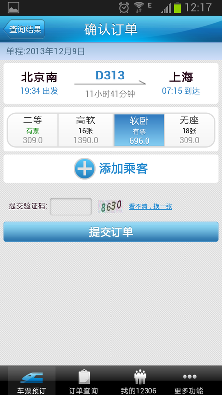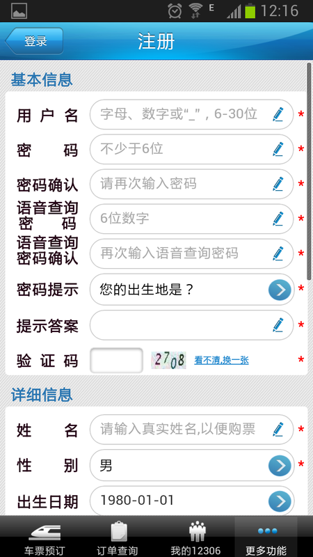 当然,还有注册功能,没有12306号码的同学也可以在手机端注册!