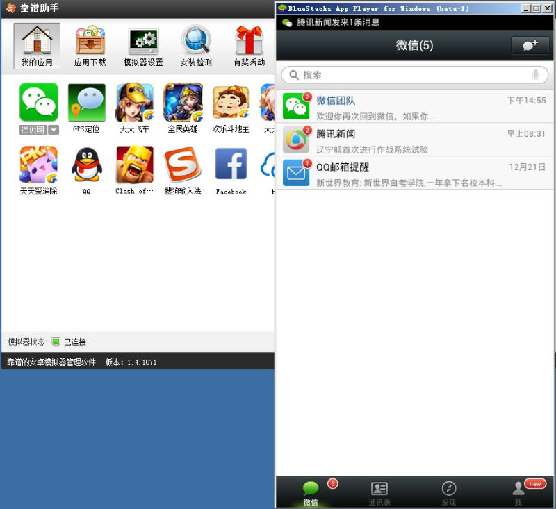 微信,超过两亿人使用的手机应用,但腾讯官方还未发行微信电脑版。靠谱助手微信电脑版改变了这个格局!微信将不单单是手机平台的宠儿!使用靠谱助手【点击下载】,就能实现手机微信的所有功能,包括“查看附近的人”、“摇一摇”、“朋友圈”功能。