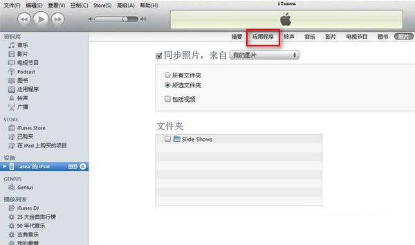1.打开iTunes之后点击应用程序