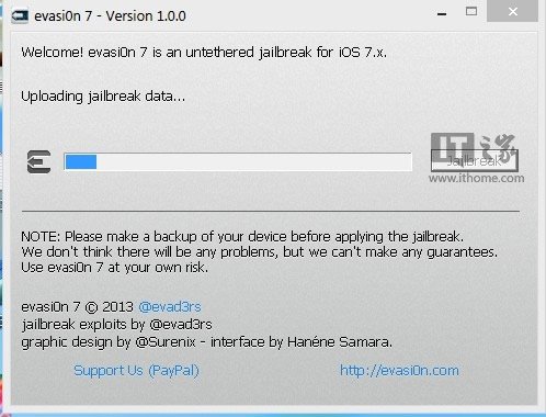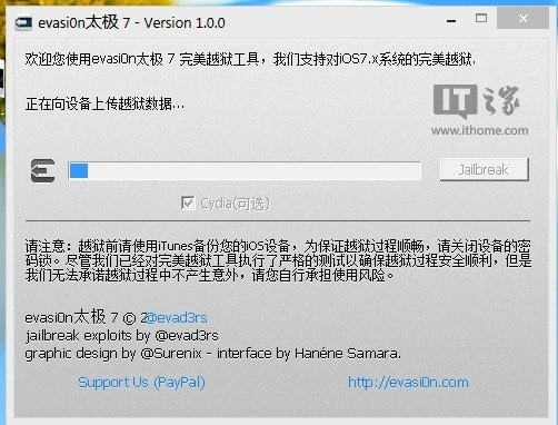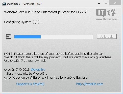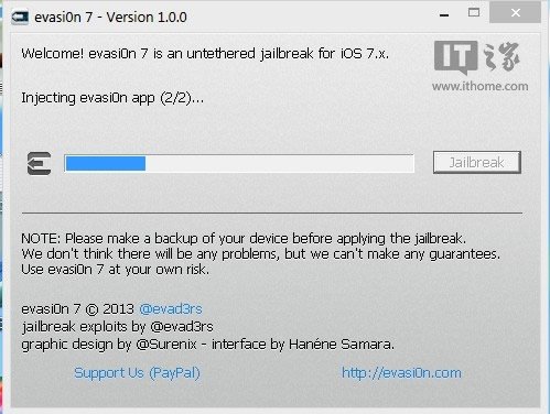 evad3rs在12月22日悄然放出iOS7完美越狱工具,支持运行 iOS7 - iOS7.0.4 系统的所有iPhone、iPad、iPod touch设备。但是,针对中国市场打造的“特供”版会强行植入某助手,也就是说是所有中文系统(IT之家注:越狱所使用的电脑语言为中文)用户都会中招。