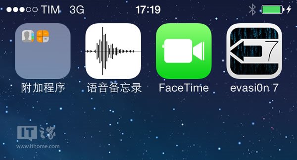 三、继续,解锁设备,同时点击iOS设备桌面上的“evasi0n7”图标。